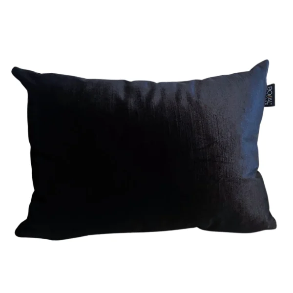 Cojín rectangular de terciopelo negro, suave y elegante, ideal para cualquier decoración.