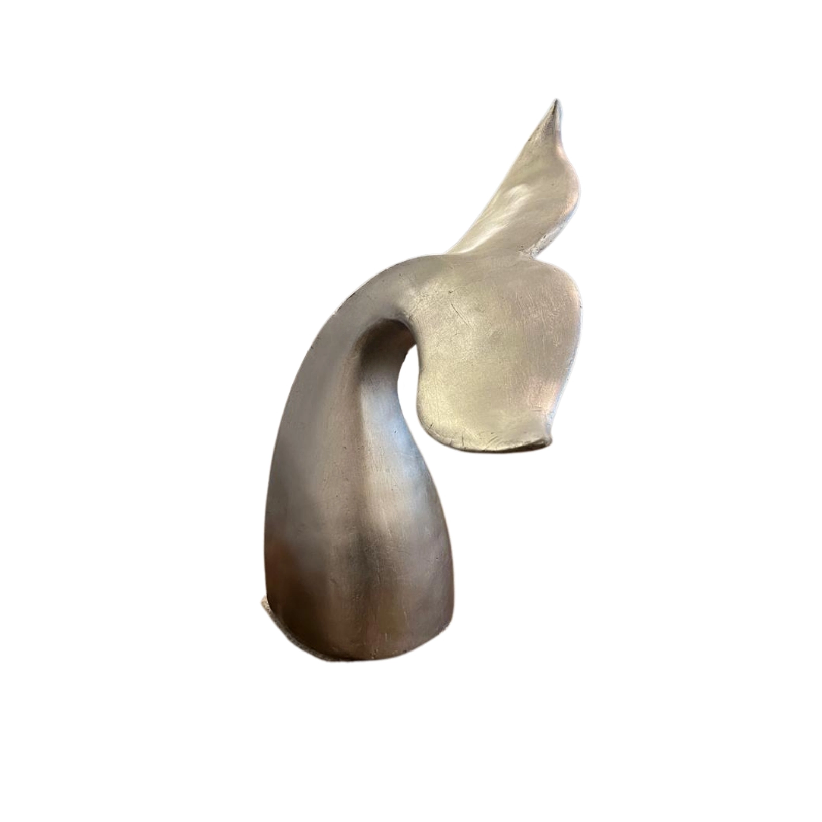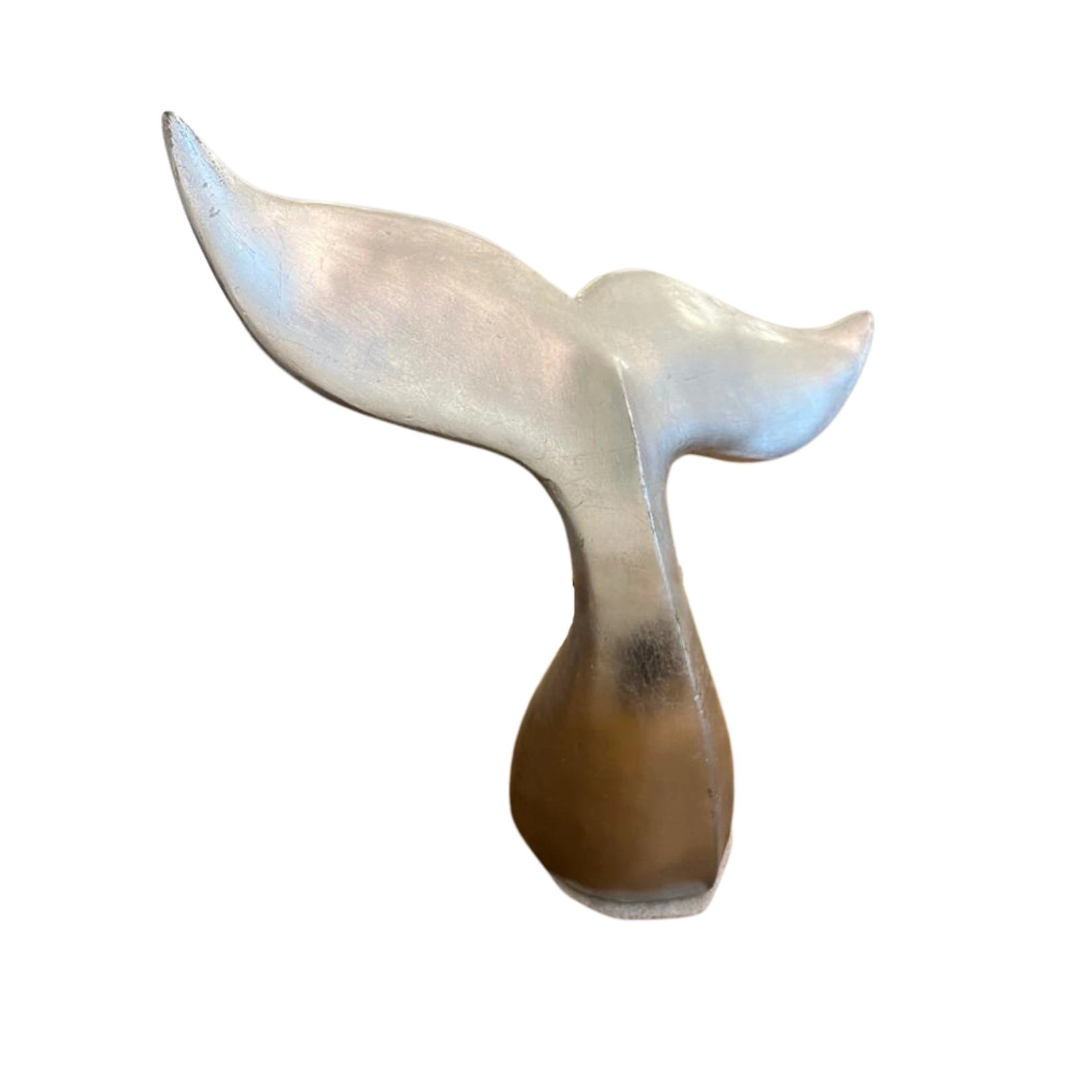 Escultura de cola de ballena en color plateado con acabado brillante. Una pieza decorativa ideal para dar un toque moderno y elegante a tus espacios.