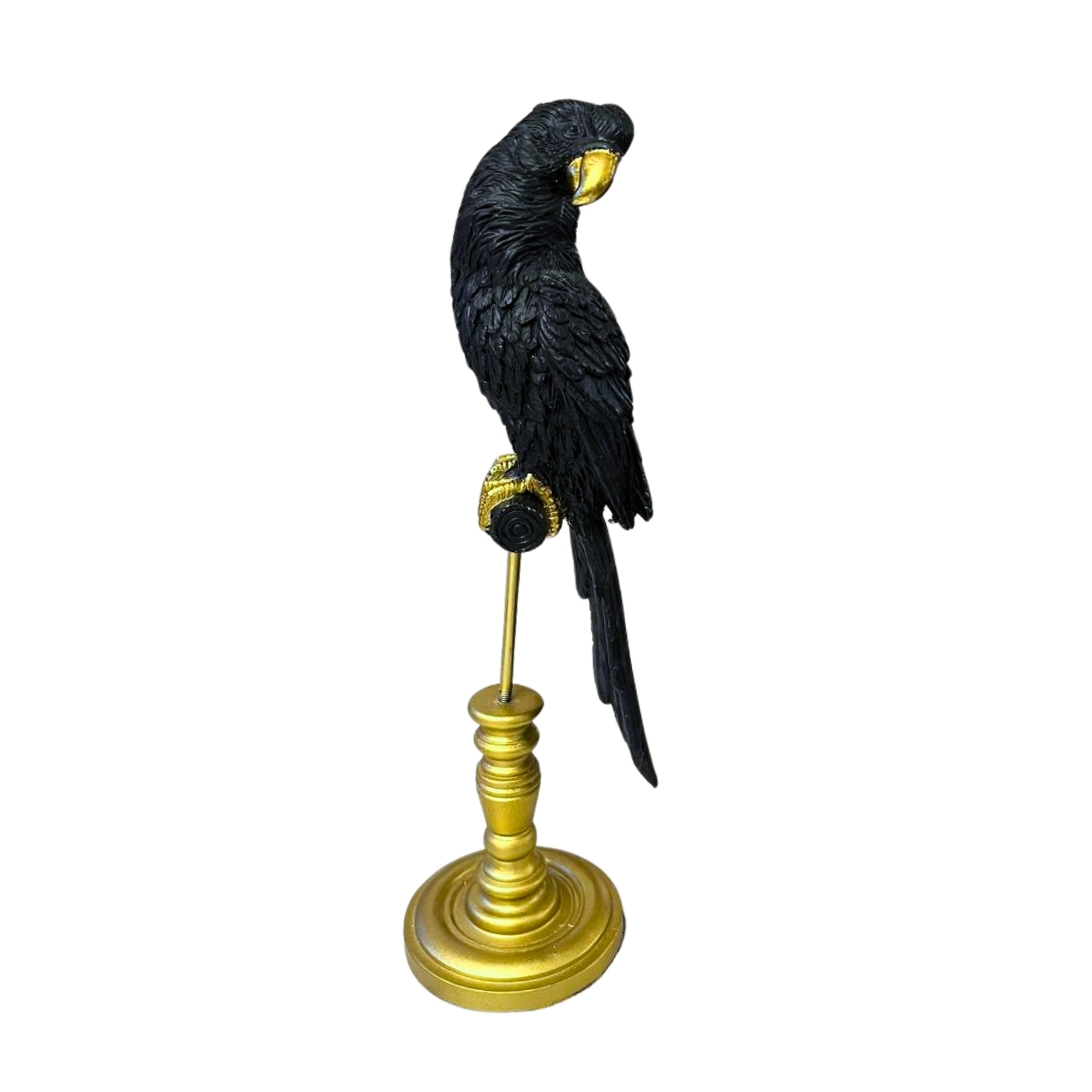 Figura decorativa de cotorro negro con detalles dorados, ideal para aportar un toque elegante a cualquier decoración