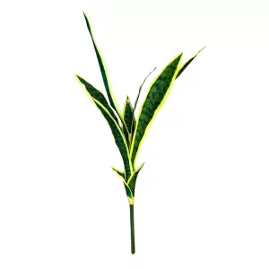 Rama de sansevieria artificial con hojas verdes y bordes amarillos. Perfecta para un toque moderno en la decoración.