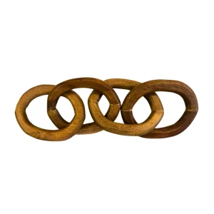 Cadena decorativa de madera con cuatro eslabones interconectados, perfecta para aportar un toque natural y elegante a cualquier espacio