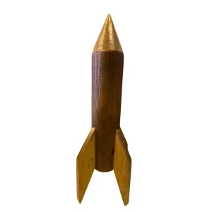 Cohete de madera con un diseño clásico, perfecto para añadir un toque de originalidad y estilo a cualquier espacio.