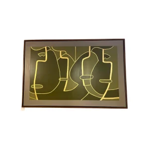 Cuadro abstracto enmarcado, con formas verdes y contornos dorados. Perfecto para un toque sofisticado.