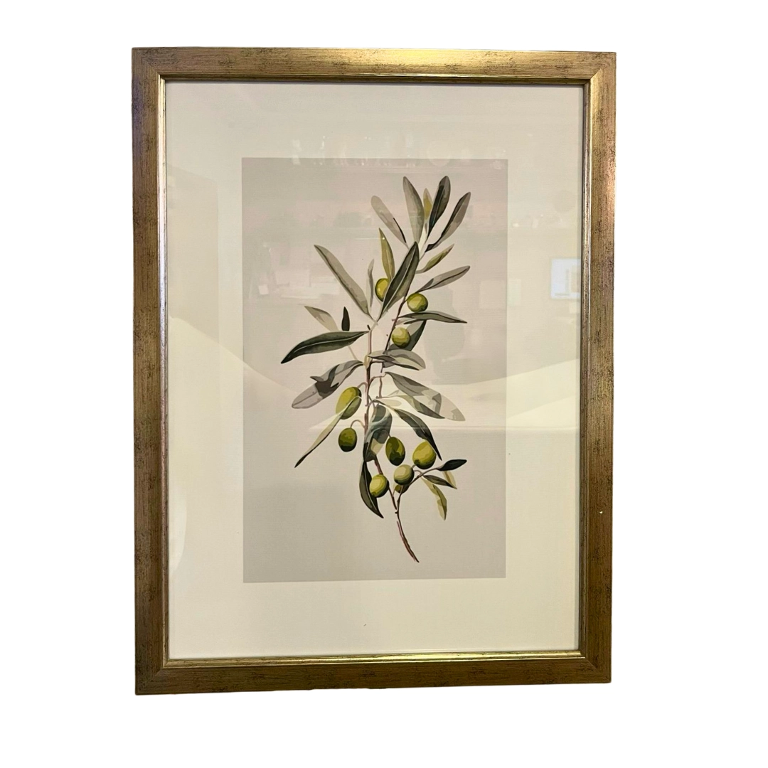 Cuadro con diseño de rama de olivo con marco dorado envejecido. Un toque de naturaleza y elegancia clásica.