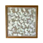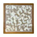 Cuadro abstracto en blanco y negro sobre fondo crema, enmarcado en madera clara. Diseño minimalista y moderno para cualquier espacio