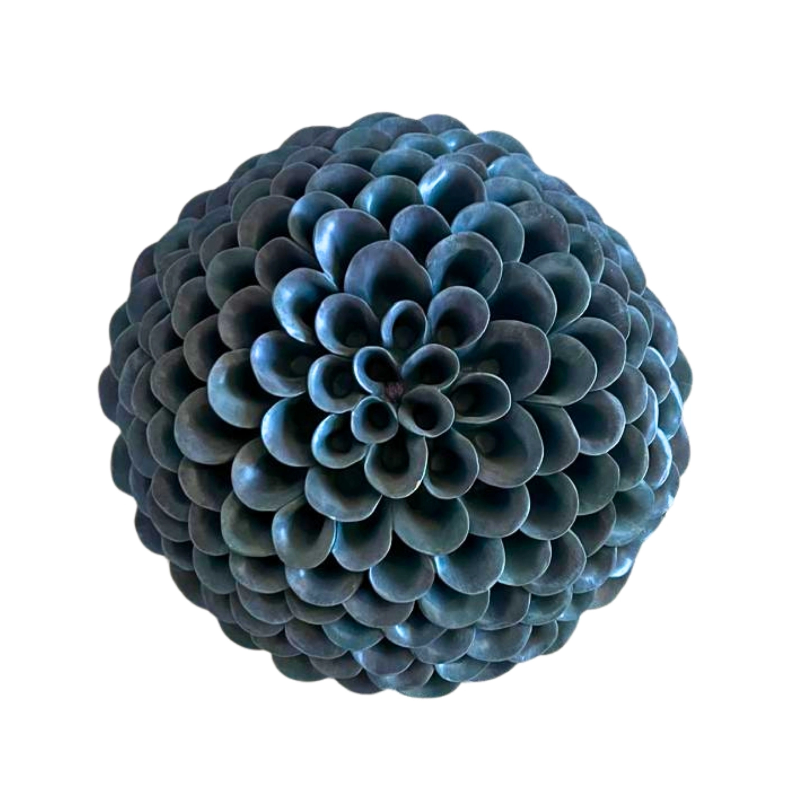 Dalia decorativa en azul, con múltiples capas de pétalos que aportan elegancia a cualquier espacio.