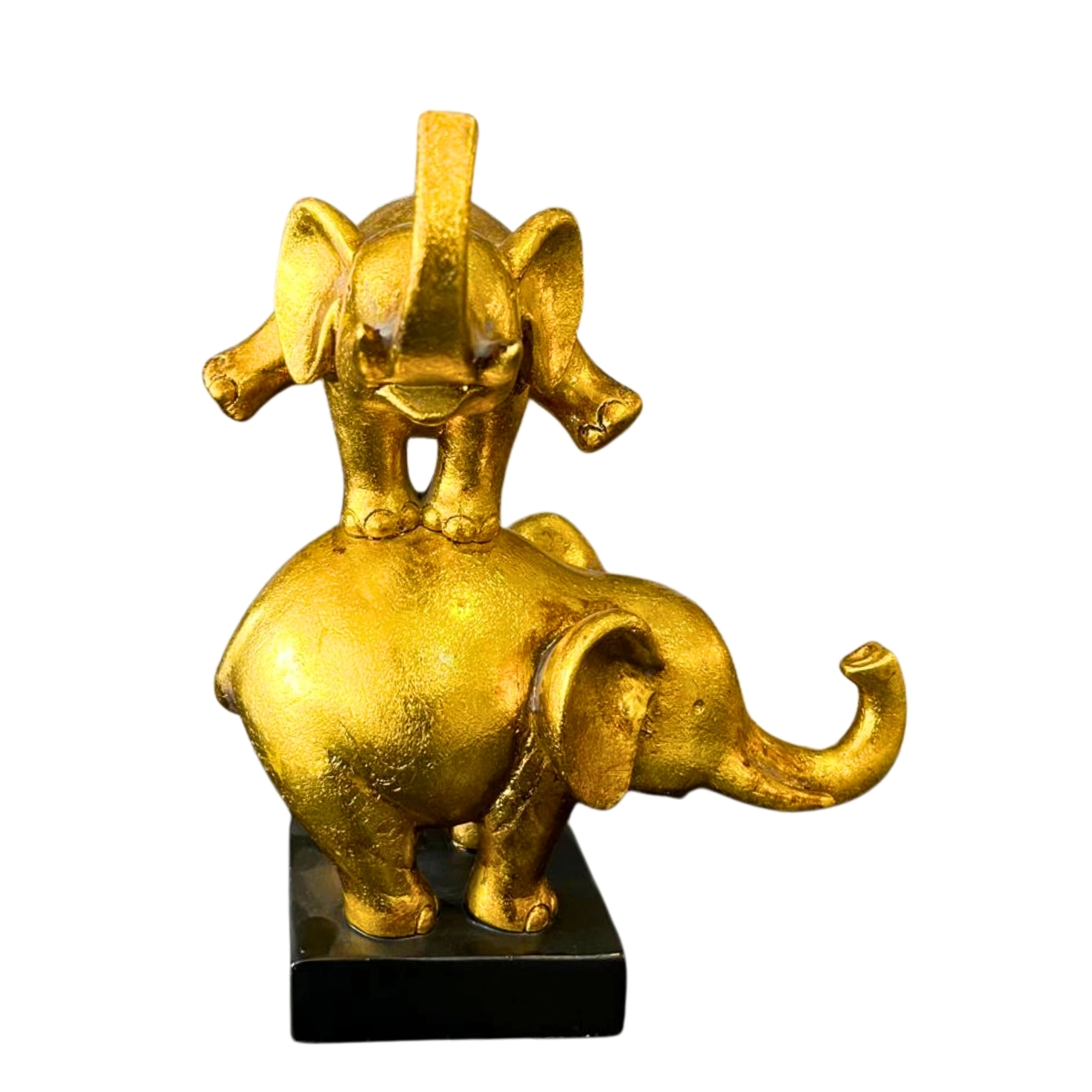 Escultura de dos elefantes dorados, ideal para añadir sofisticación a cualquier espacio.