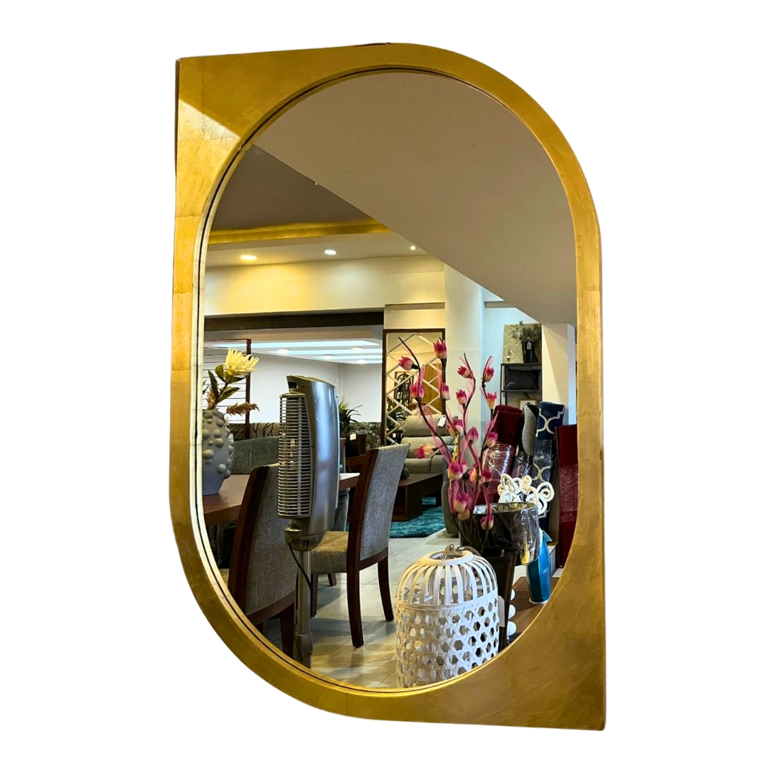 Espejo ovalado con marco dorado texturizado, ideal para aportar elegancia y amplitud a cualquier espacio.