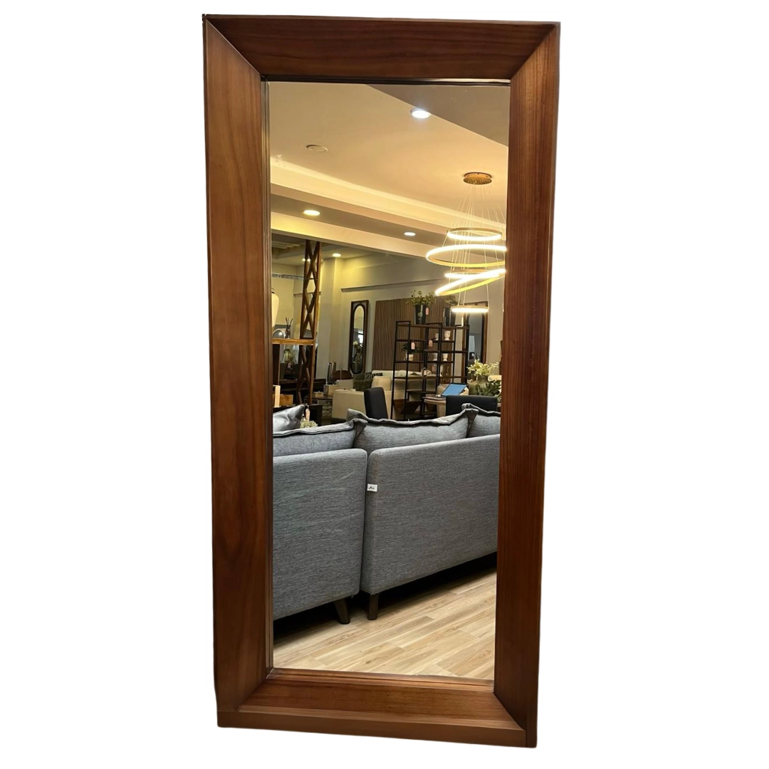 Espejo de cuerpo entero con marco de madera marrón oscuro. Elegante y funcional, ideal para cualquier espacio.