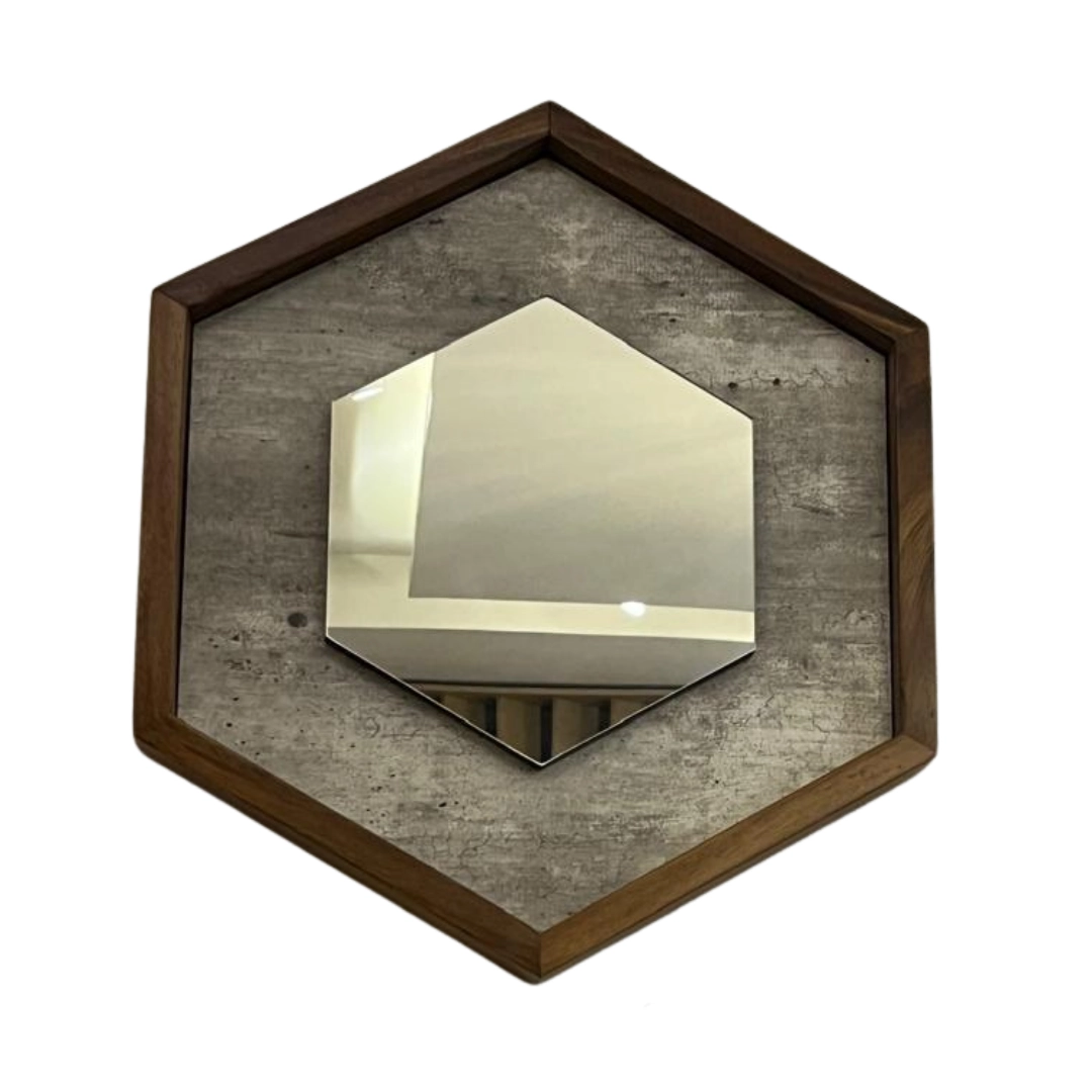 Espejo Hexagonal elegante espejo con marco de madera oscura. Perfecto para decorar cualquier pared.