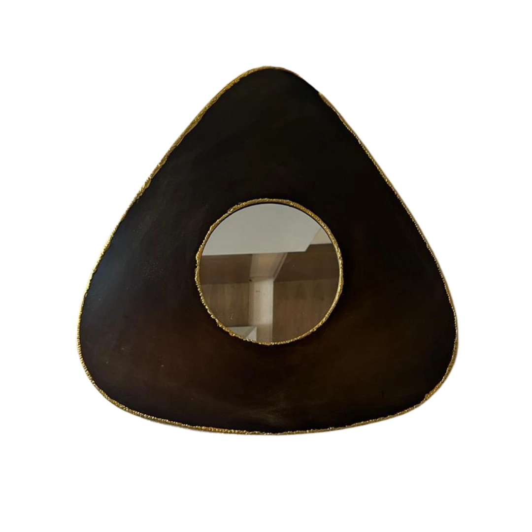 Espejo de pared en forma de gota negro y borde dorado, perfecto para añadir elegancia y luminosidad a cualquier espacio.