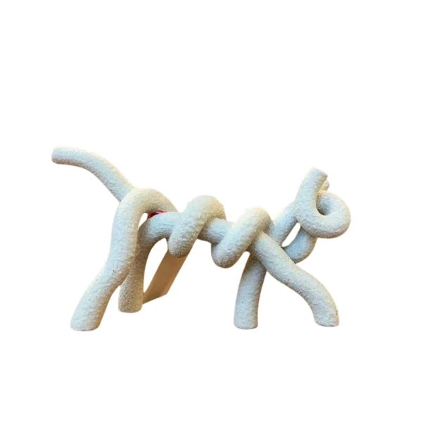 Escultura de cerámica blanca con forma de gato enroscado. Su diseño elegante y minimalista aporta un toque moderno a cualquier espacio. Disponible en 2 variaciones