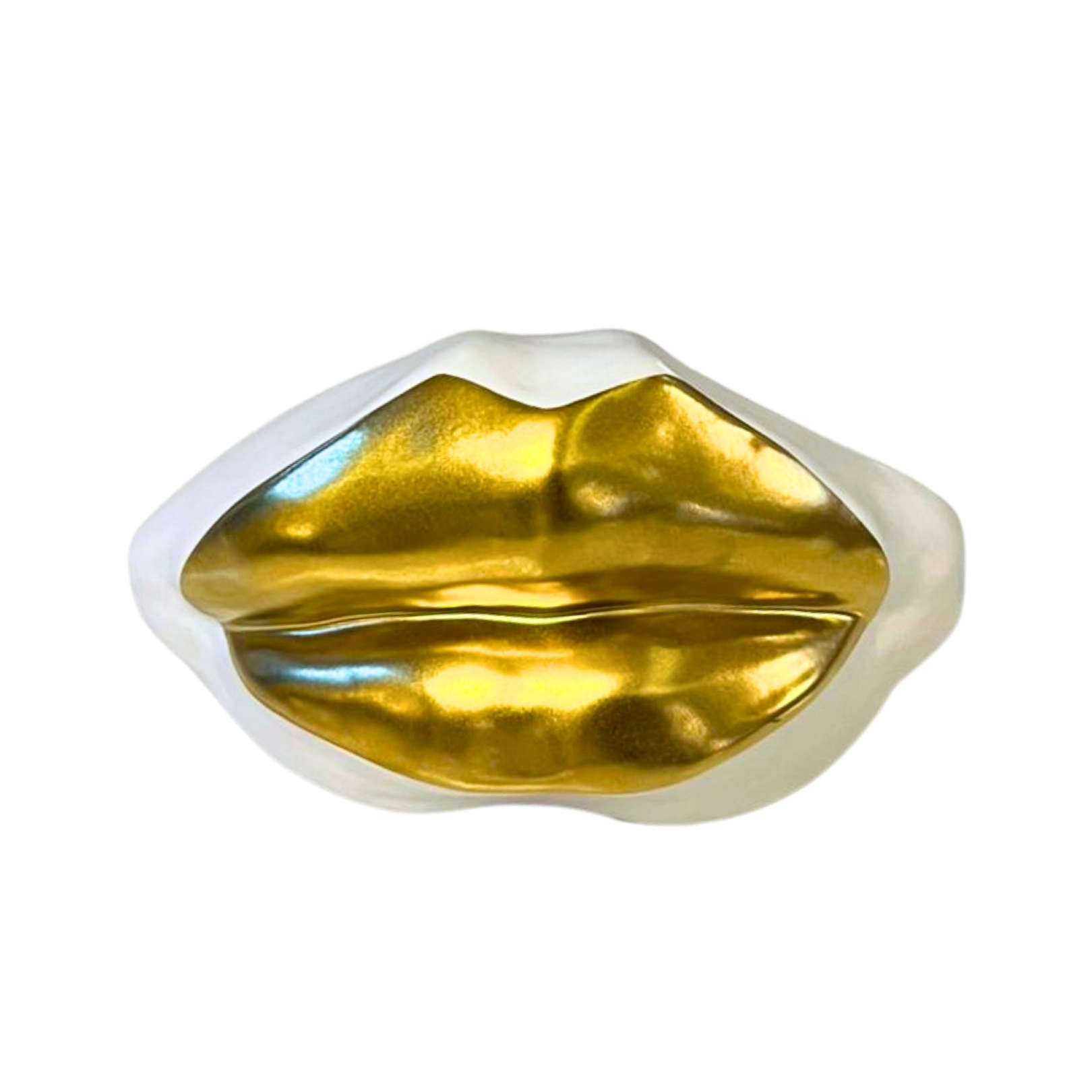 Figura decorativa de labios en dorado y blanco, perfecta para aportar un toque de elegancia moderna a cualquier espacio.