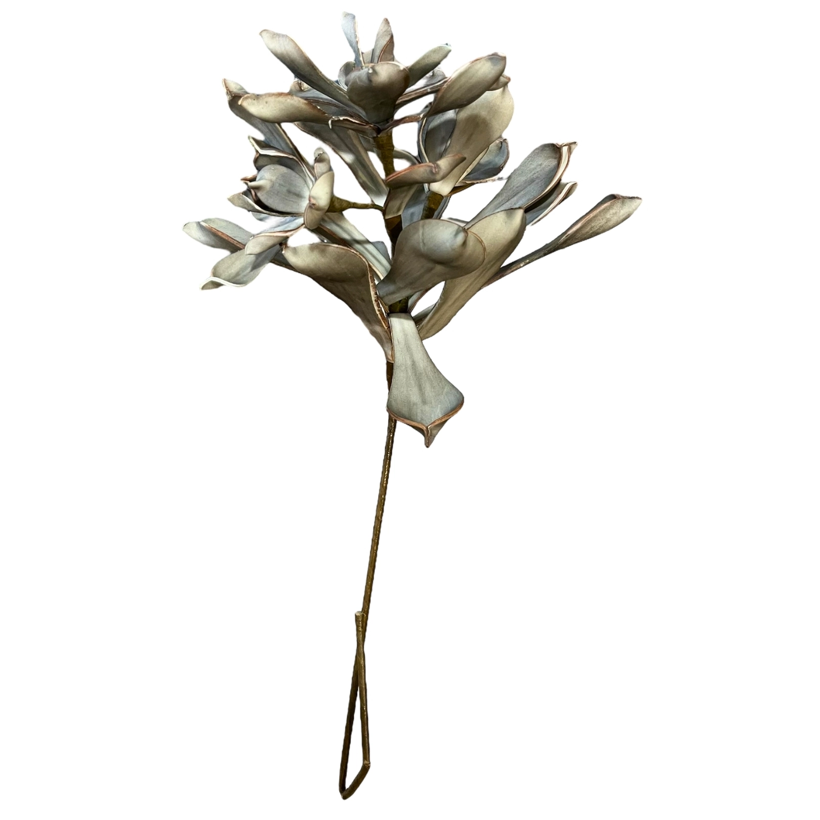 Flor artificial gris plateada, con tallo delgado y elegante, perfecta para decorar.