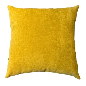 Cojín cuadrado de terciopelo color mostaza, suave y cómodo, ideal para dar un toque cálido y moderno.