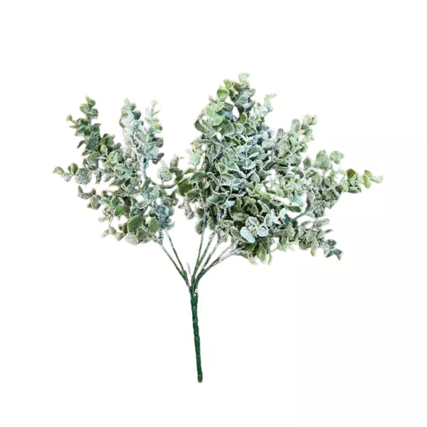 Ramo artificial de eucalipto con un delicado toque de escarcha, perfecto para aportar frescura y elegancia a cualquier decoración