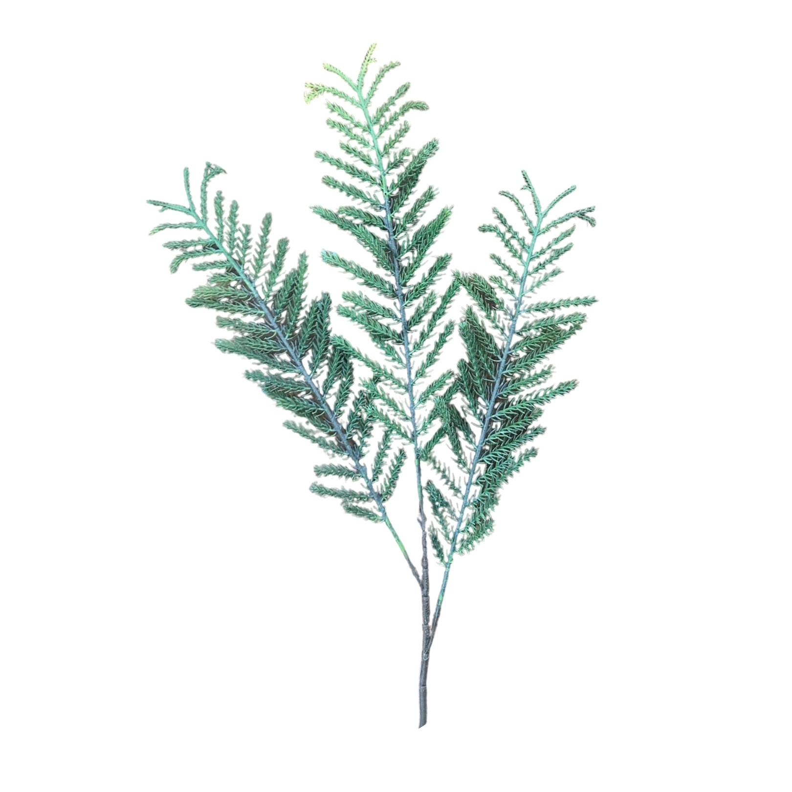 Ramas de planta artificial verde con follaje denso, ideales para añadir un toque natural y fresco a cualquier espacio.