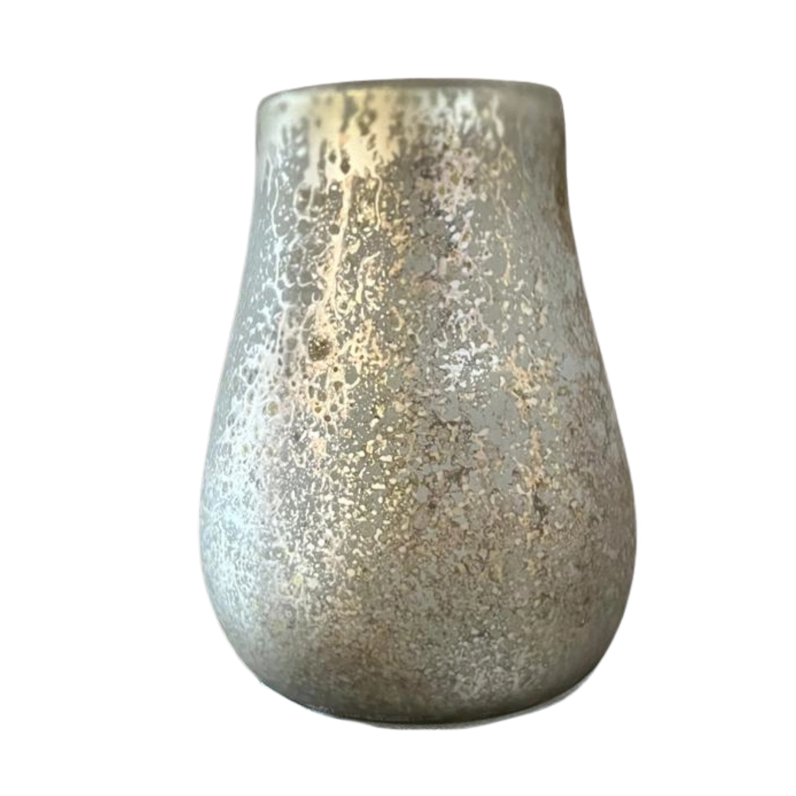 Jarrón grande y curvado de color gris con vetas plateadas, ideal para realzar cualquier decoración.