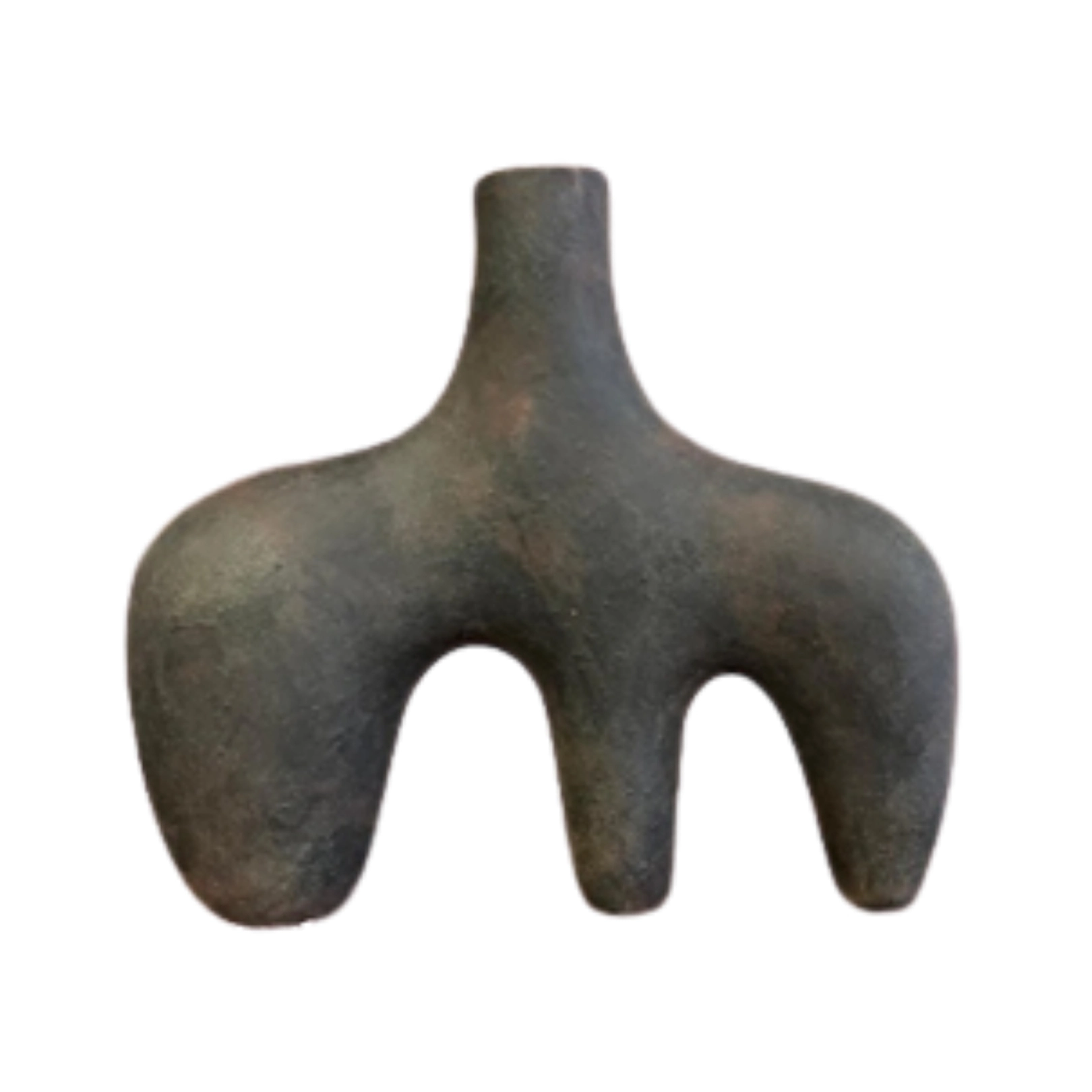 Jarrón de barro con diseño abstracto y textura profunda en tono oscuro. Una pieza moderna y sofisticada.