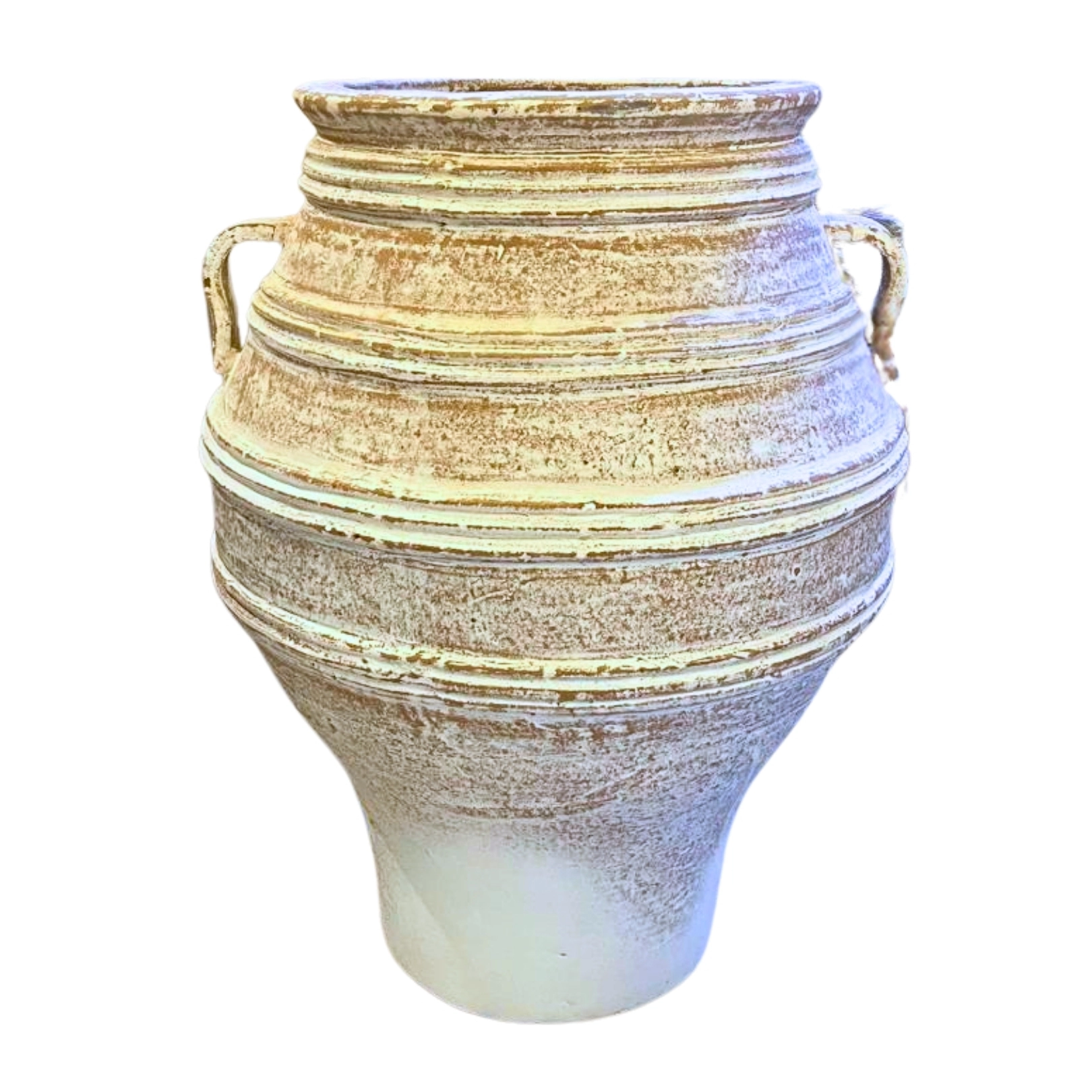 Jarrón vintage de barro en tono crema beige, con asas laterales. Un toque de encanto clásico para tu decoración