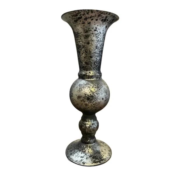 Jarrón alto con acabado metálico moteado en plata y negro. Ideal para añadir elegancia a cualquier decoración.