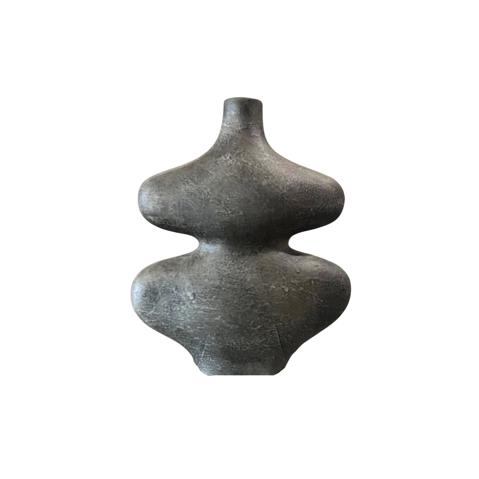 Jarrón gris oscuro con textura rugosa y diseño escultural, ideal para decorar cualquier espacio.