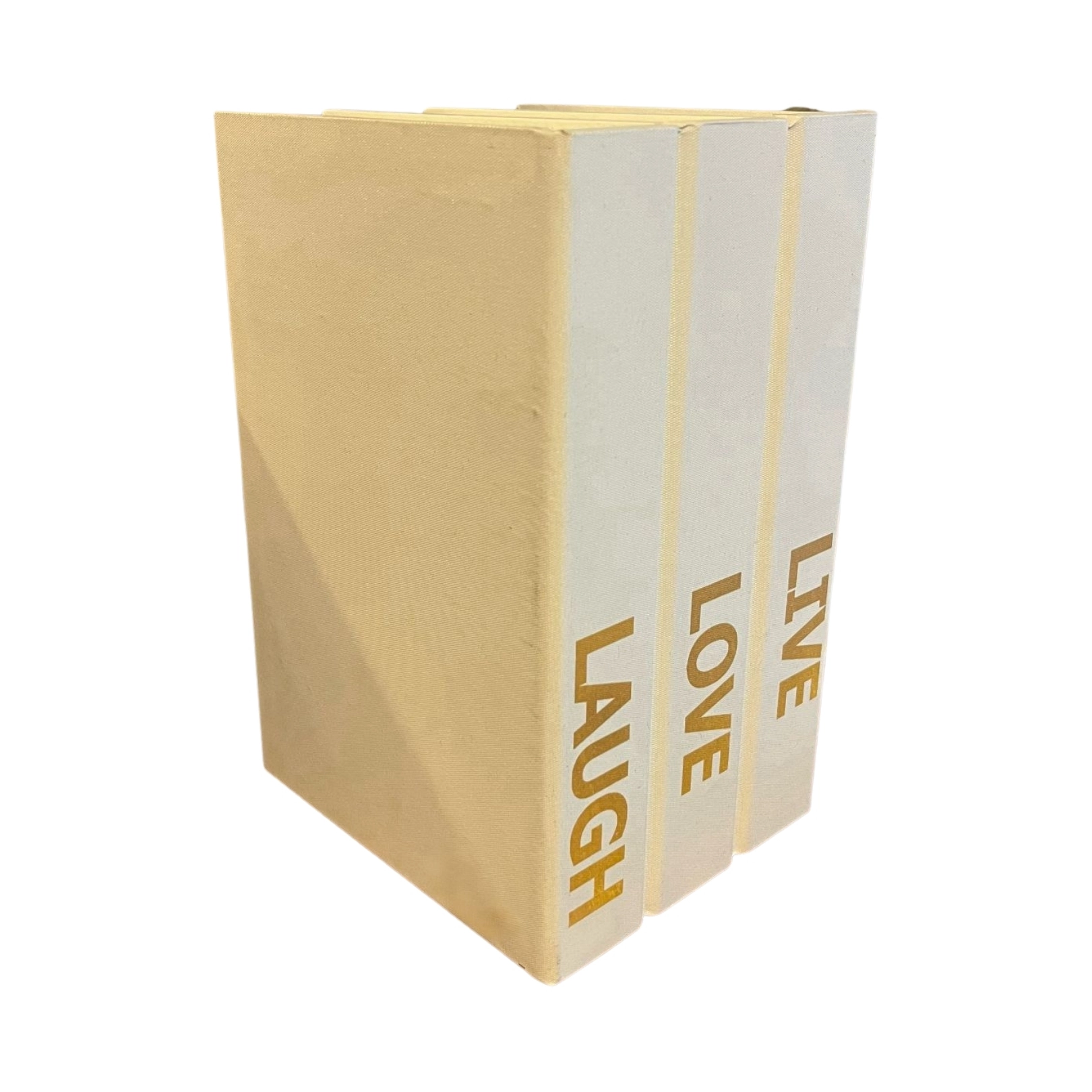 Libros decorativos tono beige con palabras en dorado. Perfectos para decorar.