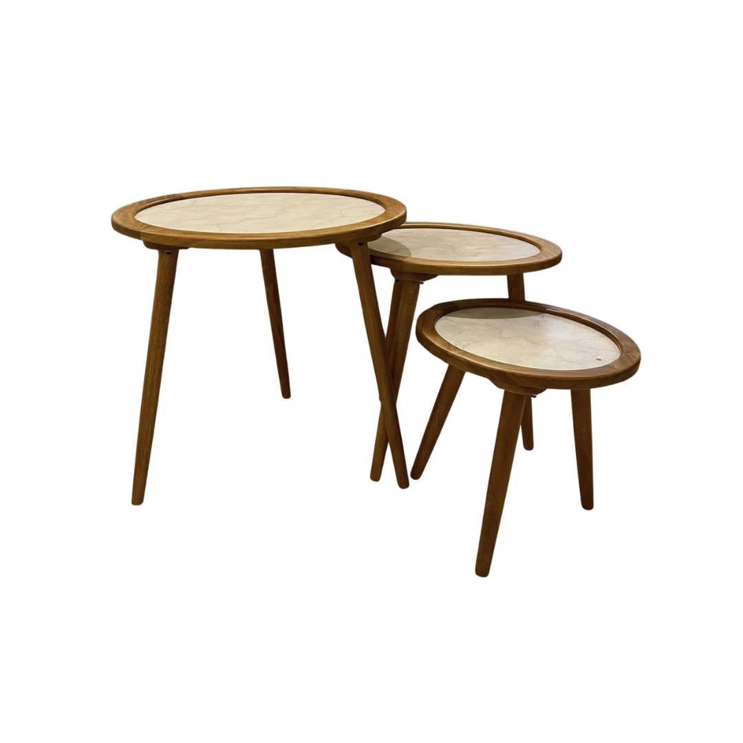 Conjunto de 4 piezas enchapado de tzalam mesas auxiliares hexagonales de diferentes alturas y colores. Ideal para añadir estilo y funcionalidad a tu espacio. Perfectas para cualquier sala de estar.