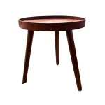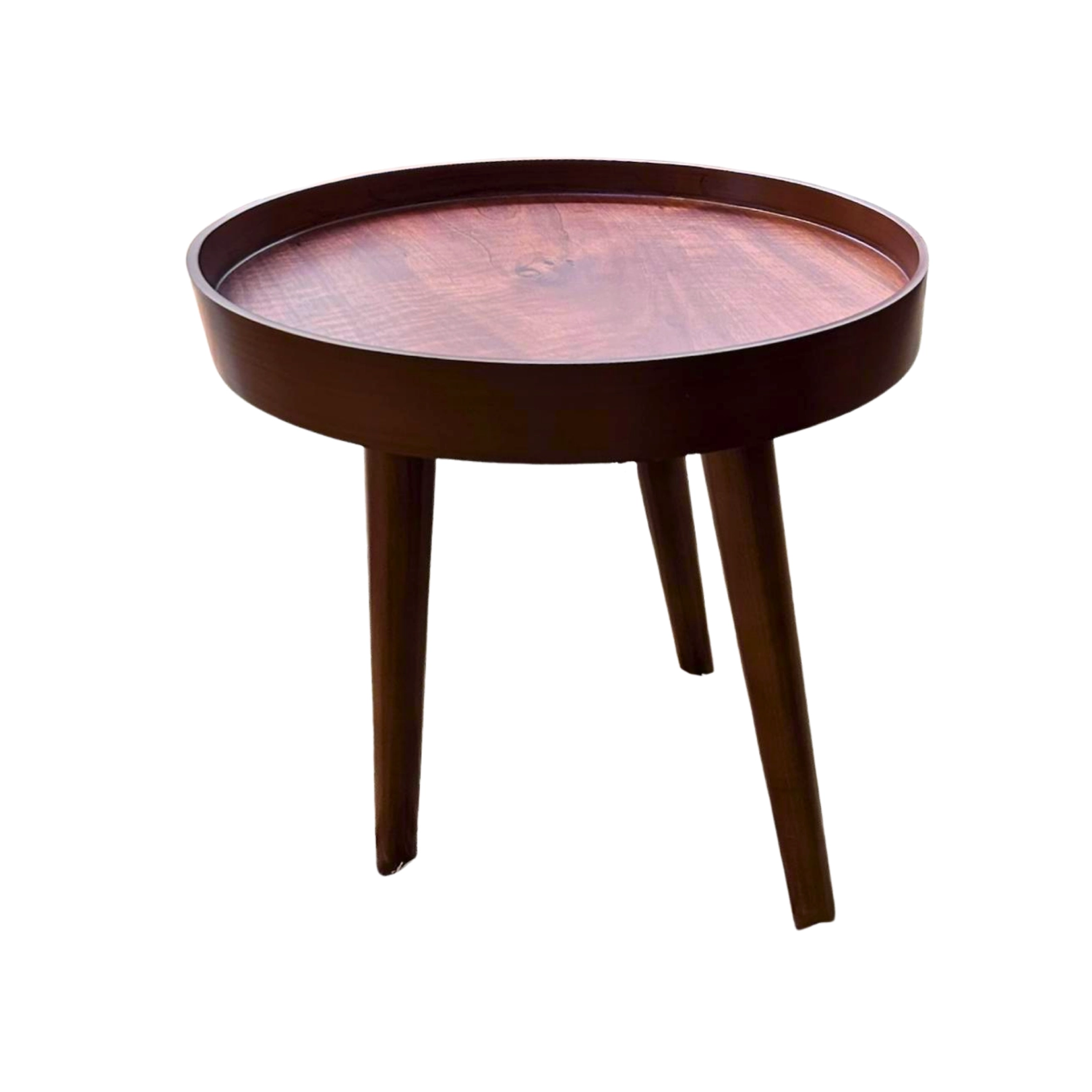 Juego de dos mesas ocasionales de madera oscura, con un diseño práctico que permite apilarlas. Grande 51 de diámetro x 56 de alto. Chica 41de diámetro x 46 de alto