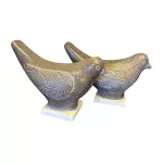 Juego de pájaros decorativos en gris oscuro, montados sobre bases blancas. Ideales para un toque moderno a cualquier decoración.