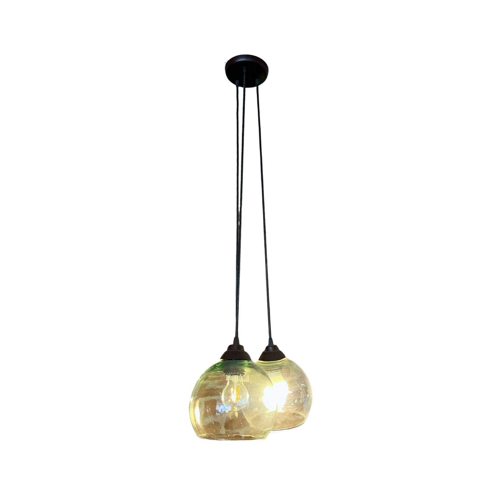 Lámpara colgante de vidrio con acabado moderno. Diseño esférico y luz cálida para iluminar con estilo cualquier espacio.