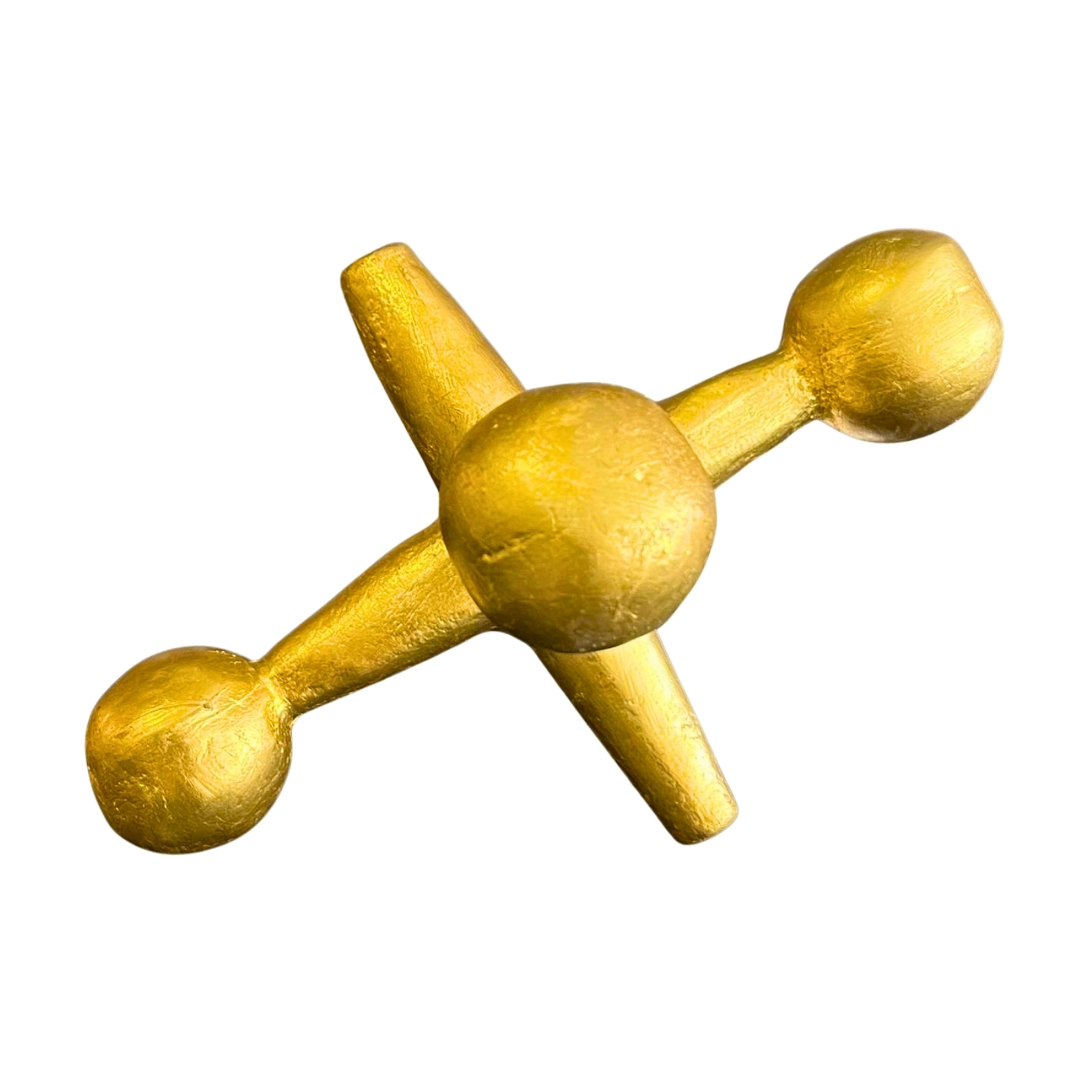 Matatena grande dorada, con textura rugosa y acabado metálico brillante. Perfecta como decoración moderna.