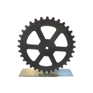 Escultura de engrane metálico en acabado gris. Un toque industrial y moderno para decorar