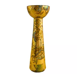Florero hoja de oro con diseño texturizado y detalles en verde azulado, ideal para añadir elegancia a cualquier espacio.