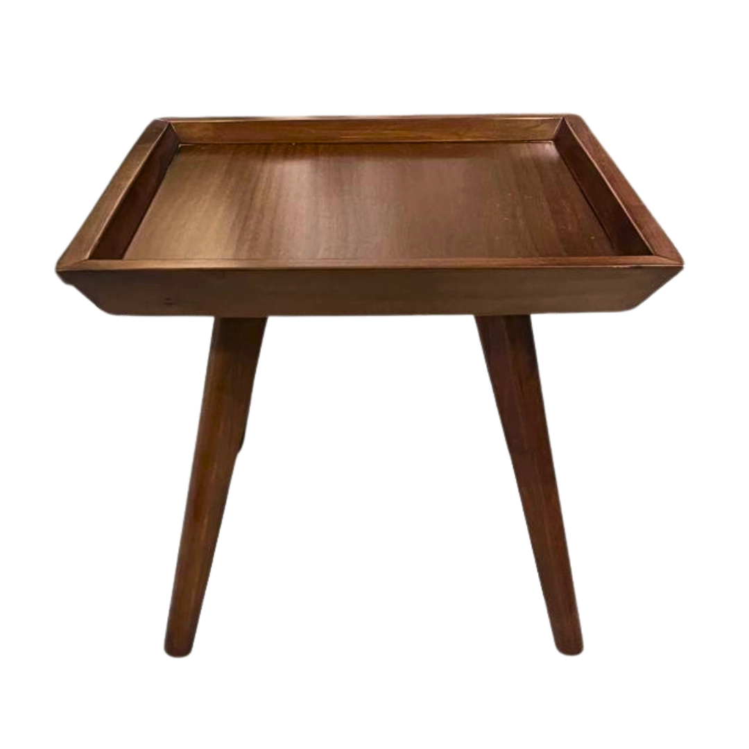 Mesa lateral de madera marrón oscuro. Ideal para complementar cualquier espacio con un toque elegante.
