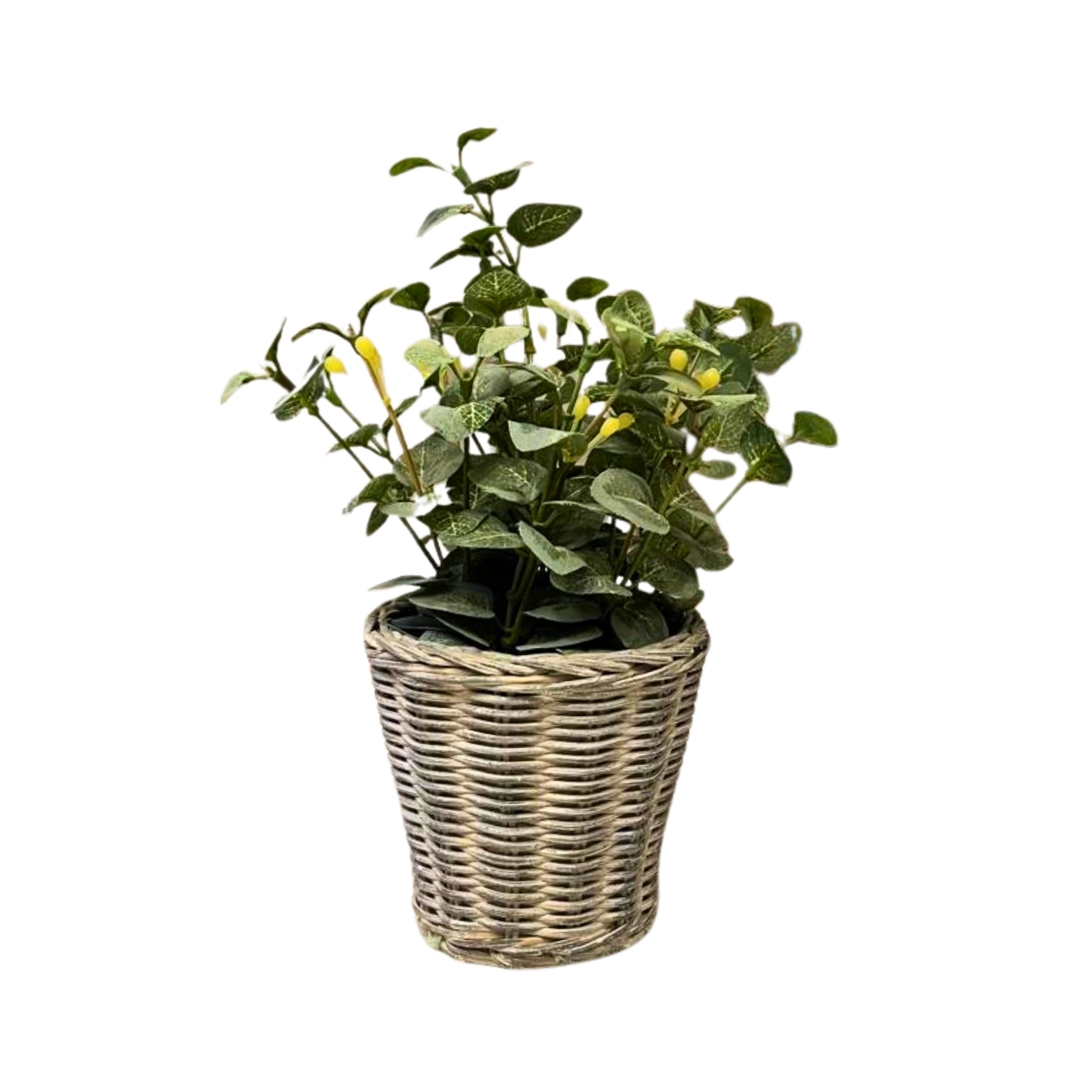 Planta artificial de orégano en canasta de mimbre, perfecta para decorar y aportar un toque natural y acogedor a cualquier espacio