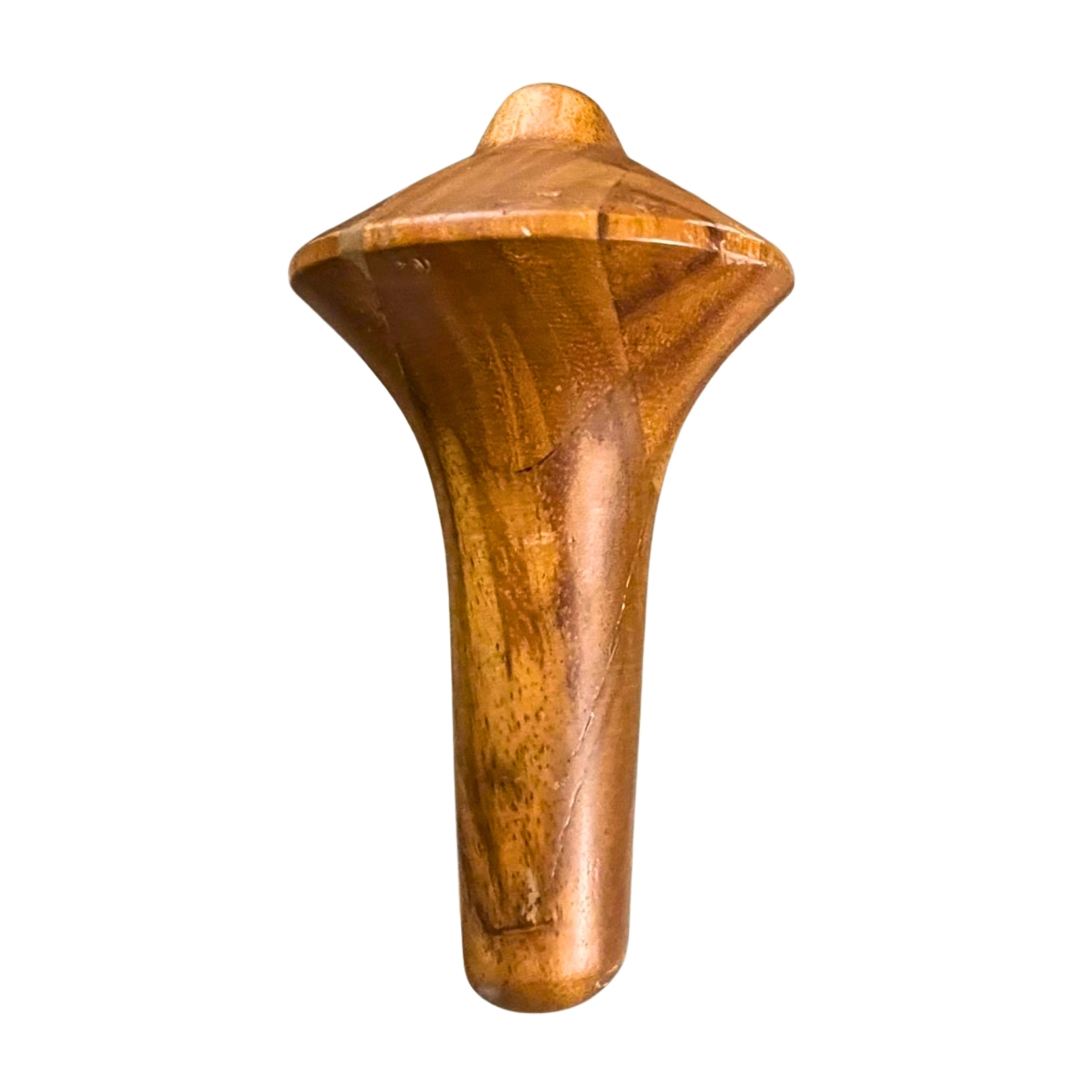 Pirinola de madera tallada en marrón. Un elemento decorativo con un diseño estilizado.