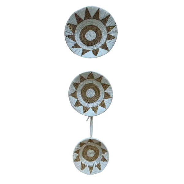 Platón decorativo circular de estambre en tonos blanco y marrón, con diseño en espiral, perfecto para embellecer cualquier pared. Chico 40 cm de diámetro. Mediano 50 cm de diámetro. Grande 60 cm de diámetro.