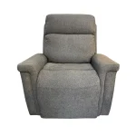Reposet moderno en tela gris de alta comodidad. Diseño ergonómico con respaldo alto y apoyabrazos amplios, perfecto para relajarse con estilo.