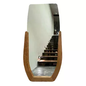Espejo de cuerpo entero con marco dorado de forma irregular, perfecto para añadir elegancia y amplitud a cualquier habitación.