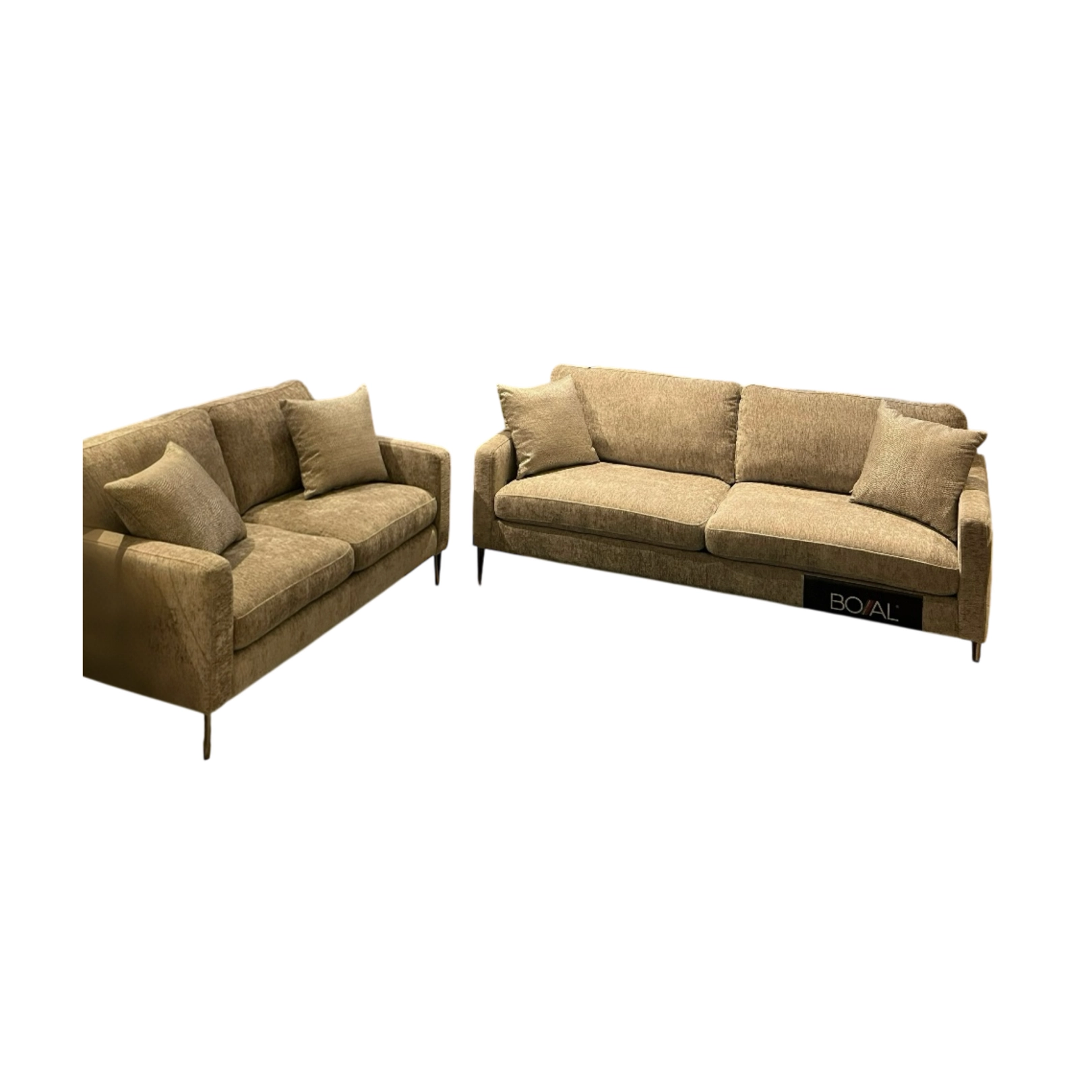 Sala con sofás oscuros en diseño moderno y cojines geométricos. Ideal para añadir comodidad y estilo a cualquier espacio. Grande 220 cm x 95 de ancho y alto de 83 cm. Chico 180 x 95 de ancho y alto de 83 cm.