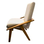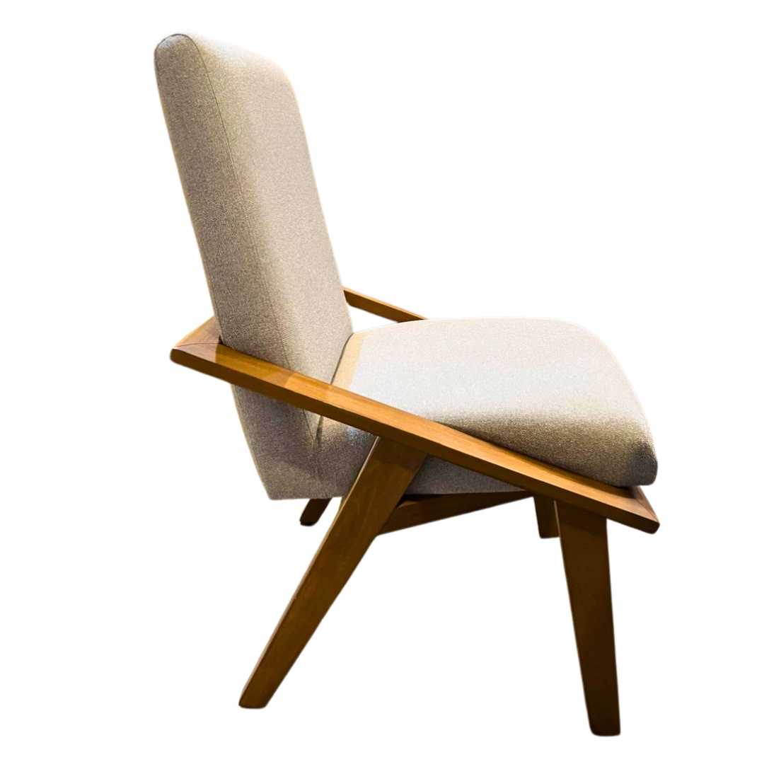 Silla de comedor moderna con tapizado gris claro y estructura de madera marrón oscuro. Diseño minimalista perfecto para cualquier espacio.