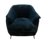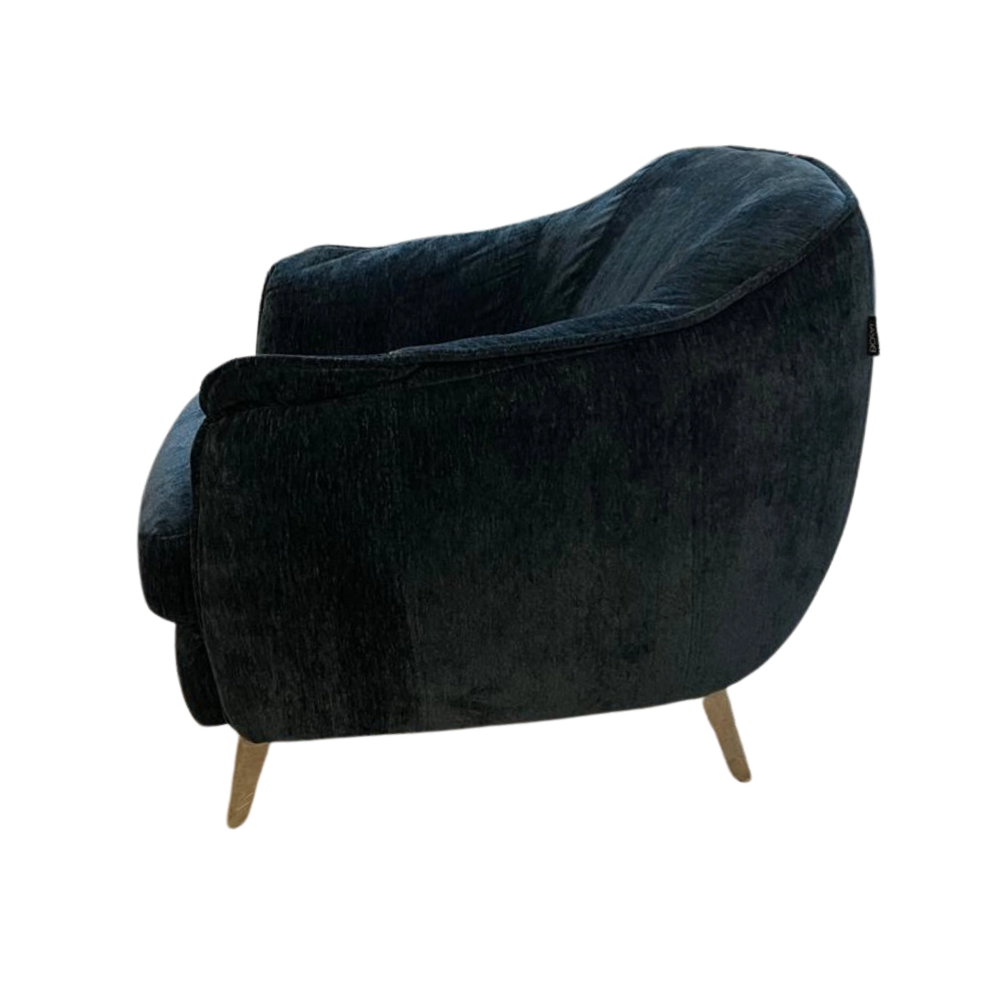 Sillón individual de color azul oscuro en tela tipo terciopelo, con diseño moderno y respaldo alto. Ideal para complementar cualquier espacio.