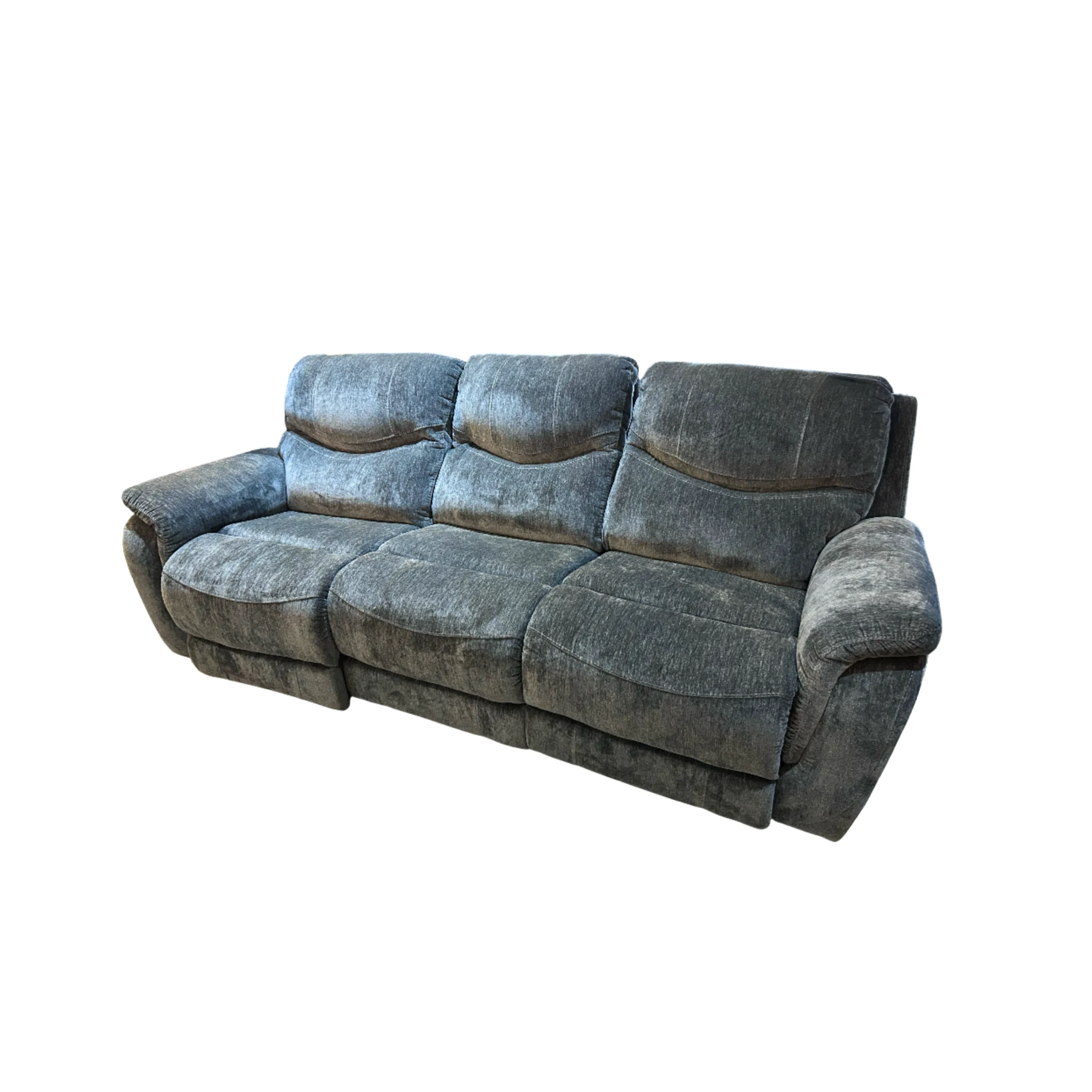Sofá reclinable de tres plazas en tela gris oscuro. Confort y estilo para tu sala de estar.