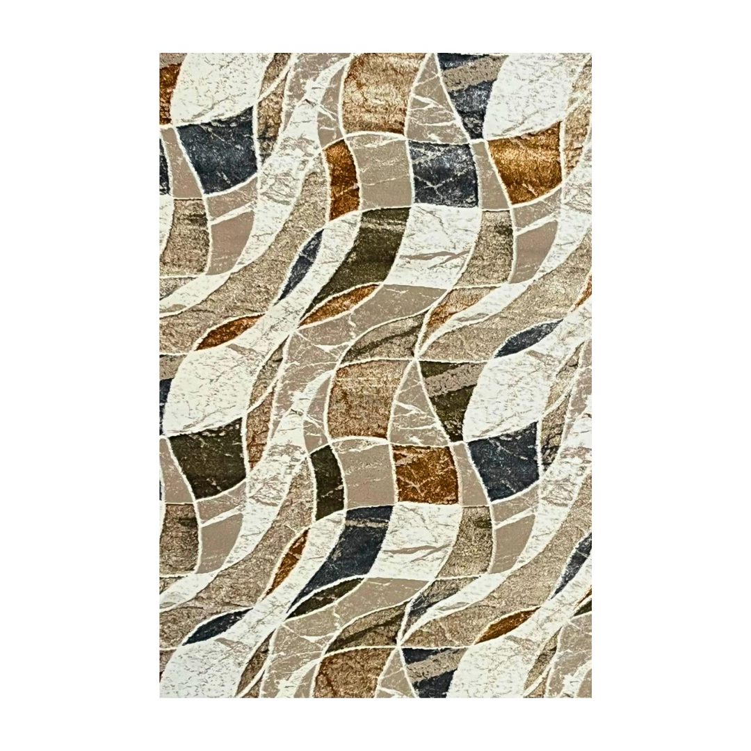 Tapete abstracto en tonos tierra y grises, con formas orgánicas que aportan modernidad y calidez a cualquier espacio.