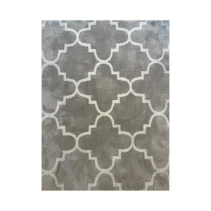 Tapete con diseño geométrico de tréboles blancos sobre fondo gris. Perfecta para añadir estilo y confort a cualquier espacio.