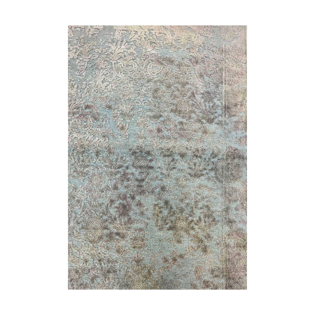 Tapete floral en azul y gris, con textura suave y elegante diseño damasco, perfecta para cualquier espacio.