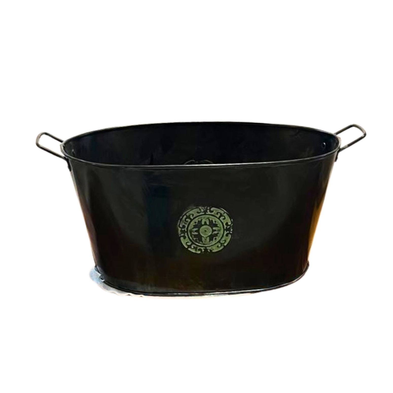Tina metálica ovalada en color negro, perfecta para aportar un toque moderno y elegante a cualquier espacio