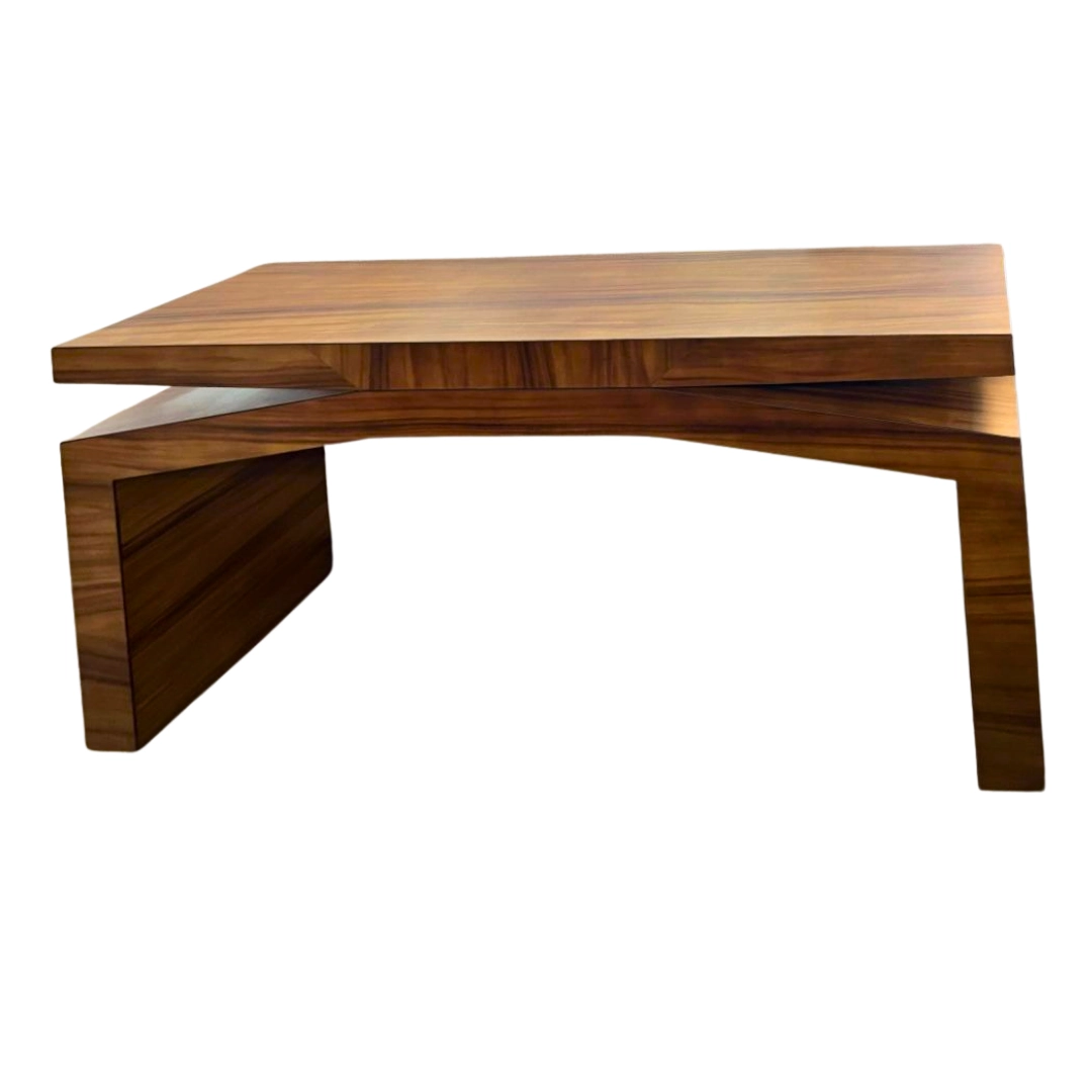 Mesa de centro moderna de madera con diseño geométrico y patas estilizadas. Perfecta para cualquier sala.