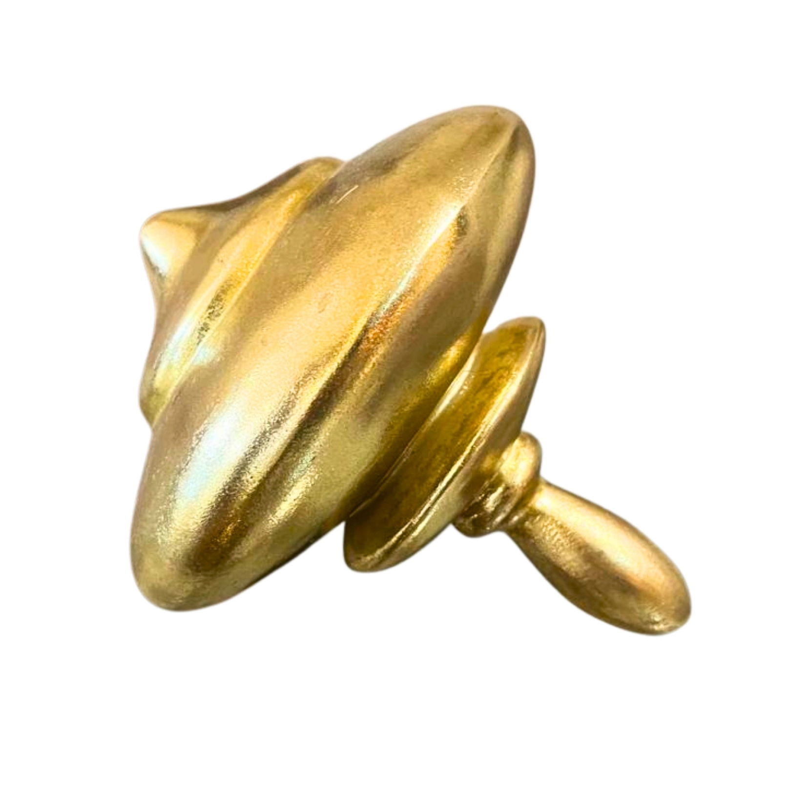 Trompo dorado con acabado brillante, ideal como pieza decorativa para espacios modernos.